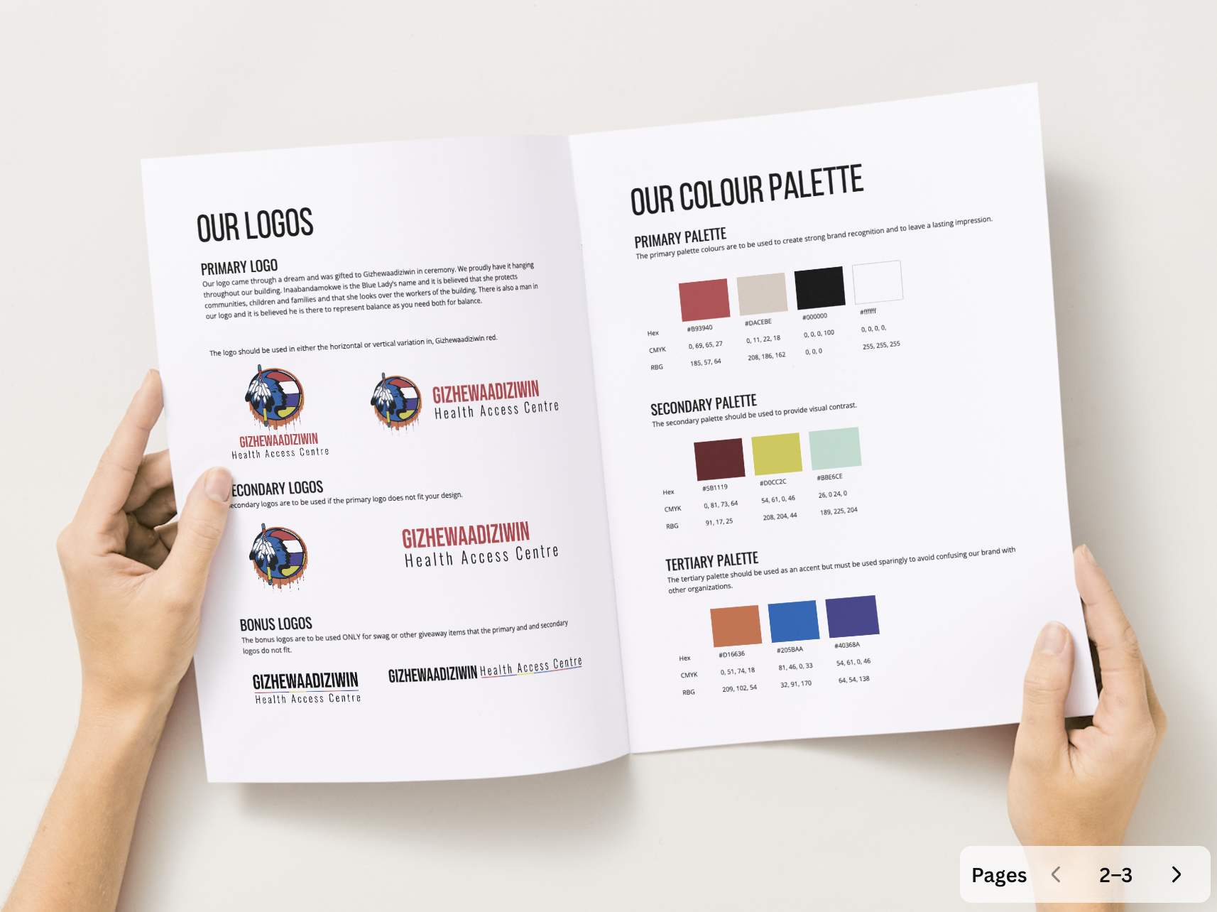 A full brand refresh for Gizhewaadiziwin Health Access Centre, focused on clarity, consistency, and the grandfather teachings. The visual identity was refined through a logo update and brand guide, then carried across print and digital materials. From business cards and staff apparel to coffee cups, roll banners, and program brochures, the brand is now consistent. The work also included a strategic plan document and social media content, with campaigns designed to make communication feel more focused and approachable.